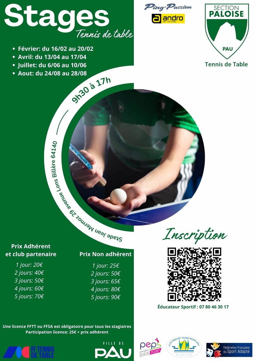Stage OUVERT A TOUS : loisirs Débutants - licenciés du club de Pau - licenciés extérieurs