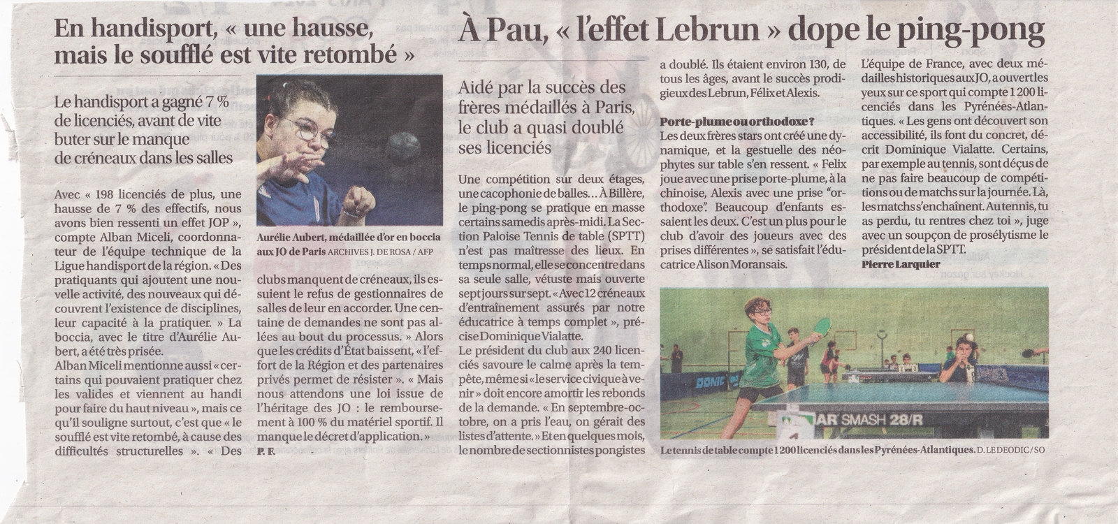 Club avec Salle spécifique de 9 Tables, activités Loisirs , Compétitions, Sport Santé, Sport Adapté, encadrement par un Educateur sportif salarié à temps complet, salle annexe 16 tables pour les animations